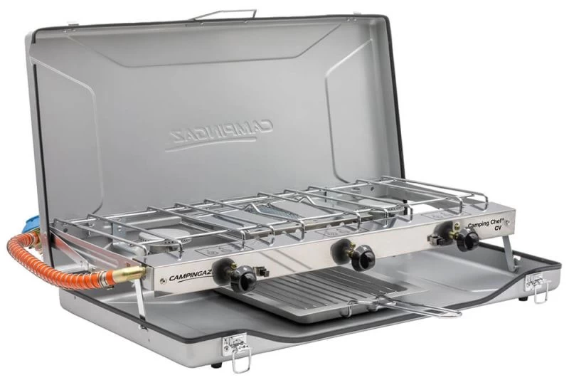 An innovative grill pan with useful dents for optimum cooking and storage is supplied with the stove. It is easy to clean thanks to removable, stainless steel burners and packs down neatly for easy transportation at the end of a trip.