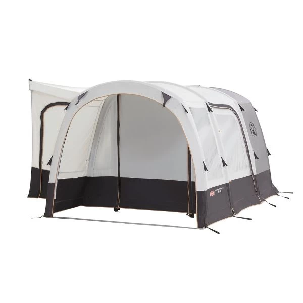 The Journeymaster Deluxe Air awning is Coleman’s first ever inflatable driveaway awning and it has been designed to enhance your camping experience by offering plenty of space outside of the van for either living in or sleeping in. All of the models come with a BlackOut bedroom as standard and face the same direction as the van to ensure you face the view and not your neighbour’s pitch. As the awning is inflatable it is very quick and easy to pitch. The awning is available in three sizes so you can make sure you have as much room as you need. The smallest of the range is the ‘M’ which is perfect for the camper who doesn’t want a big awning. The Deluxe L is just a touch bigger than the M and has a larger living area and canopy space while still having a 2-berth bedroom. The larger model is the XL which not only has a large living space but also a 4-berth bedroom as standard and this is probably the largest driveaway awning on the market.