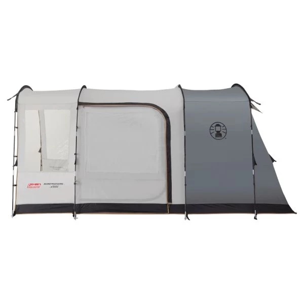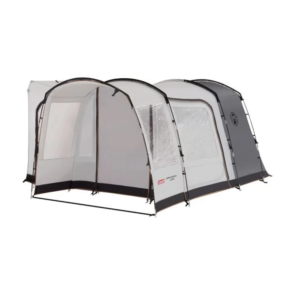 The Journeymaster Pro Poled awning is new from Coleman for the 2022 season and has been designed to enhance your camping experience by offering plenty of space outside of the van for either living in or sleeping in. All of the models come with a BlackOut bedroom as standard and face the same direction as the van to ensure you face the view and not your neighbour’s pitch. The awning is available in three sizes so you can make sure you have as much room as you need. The smallest of the range is the ‘M’ which is perfect for the camper who doesn’t want a big awning. The Pro L is just a touch bigger than the M and has a larger living area and canopy space while still having a 2-berth bedroom. The larger model is the XL which not only has a large living space but also a 4-berth bedroom as standard and this is probably the largest driveaway awning on the market.
