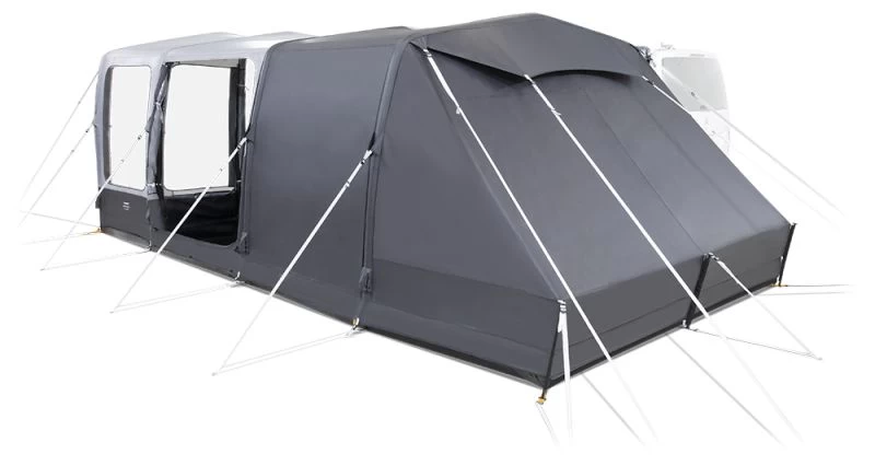 The Rarotonga 401 DA is quick and easy to pitch thanks to its Multi Point Inflation frame: merely attach the awning to your van, pump it up and peg it out (as per our Pitching video on YouTube). Packing it away is just as simple, making it great for shorter trips as well as longer stays away. One of the things that is impressive about the Rarotonga is the level of spec that it has, whether it be the storm straps around the awning, the zip up curtains or the two doors on the tunnel section which allow you to access your van without going through the main body of the awning. Every main entrance on the awning also has a mesh door, so that you can increase the airflow into the awning without having bugs/insects in as well.
