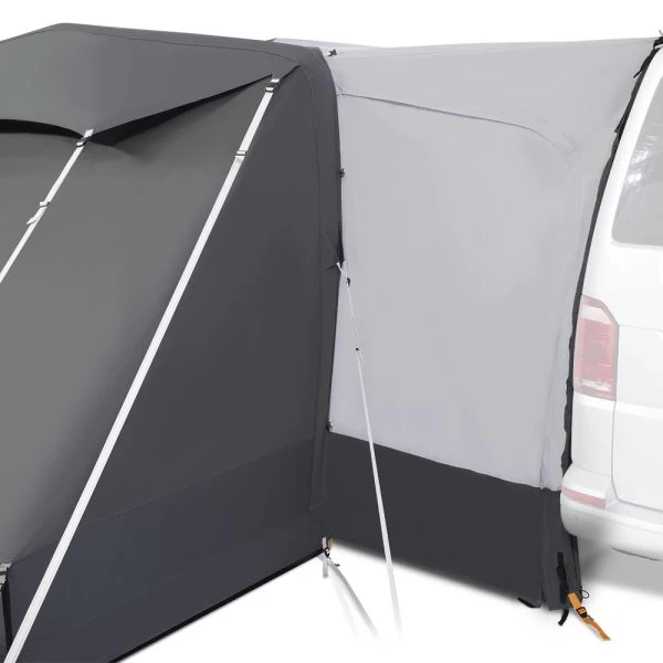 As standard the Rarotonga DA comes with a 4-berth inner bedroom so that no one has to stay cramped up in the van. The living area is ample enough space for a table and a set of chairs and you can always remove the bedroom if you wish to increase your internal space. The front canopy offers you a space to shelter from the elements and naturally creates a great area to put your wet/muddy shoes. There is an option to buy an additional vestibule which allows you to seal in the front of the canopy and give you more flexibility on its use. A rear storage section at the back of the bedroom helps to declutter the rest of the awning and allow the inner tent to have a boxier feel for tall camp beds and airbeds alike.