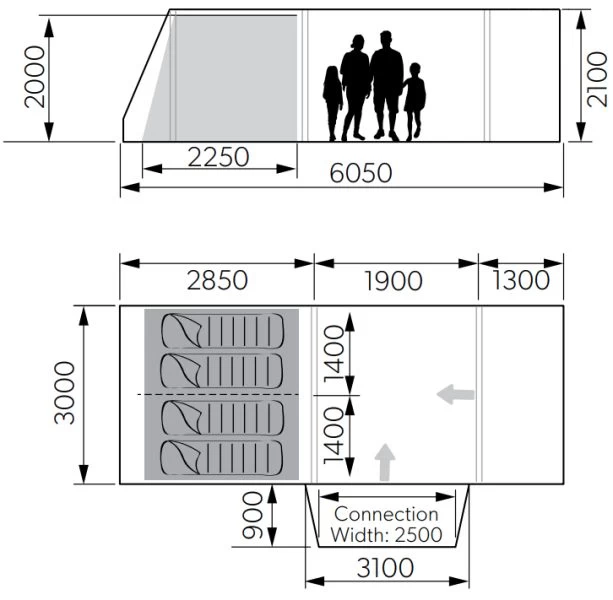 - Zipped inner divider – Offers greater privacy between inner bedrooms. Rolls away when not required