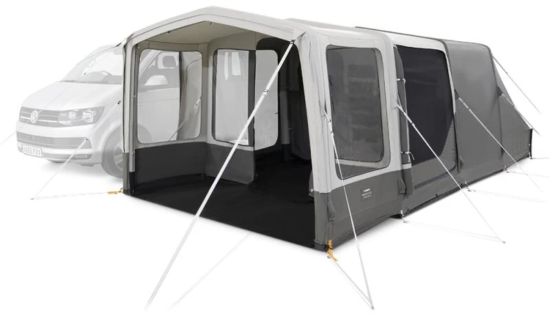 The Rarotonga 401 DA is quick and easy to pitch thanks to its Multi Point Inflation frame: merely attach the awning to your van, pump it up and peg it out (as per our Pitching video on YouTube). Packing it away is just as simple, making it great for shorter trips as well as longer stays away. One of the things that is impressive about the Rarotonga is the level of spec that it has, whether it be the storm straps around the awning, the zip up curtains or the two doors on the tunnel section which allow you to access your van without going through the main body of the awning. Every main entrance on the awning also has a mesh door, so that you can increase the airflow into the awning without having bugs/insects in as well.