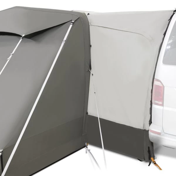 As standard the Rarotonga DA comes with a 4-berth inner bedroom so that no one is cramped up in the van. The living area is ample enough space for a table and a set of chairs but you can always remove the bedroom if you wish to increase your internal space. The front canopy offers you a space to shelter from the elements and naturally creates a great area to put your wet/muddy shoes. There is an option to buy an additional vestibule which allows you to seal in the front of the canopy and give you more flexibility on its use. A rear storage section at the back of the bedroom helps to declutter the rest of the awning and allow the inner tent to have a boxier feel for tall camp beds and airbeds alike.