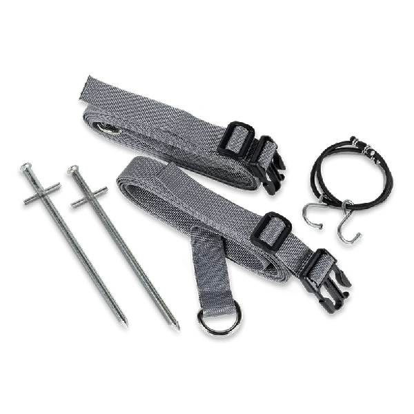 Pair of additional storm straps. Kampa / Dometic awnings come with basic guy lines but to increase stability in the event of severe winds it is advisable to purchase the storm tie down kit. Most Kampa / Dometic models have extra female buckles sewn onto the awning allowing extra stability straps to be purchased in pairs to accompany your Kampa model. Each strap measures approx 3.5m long.