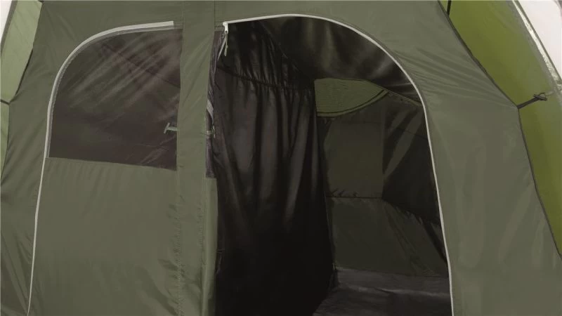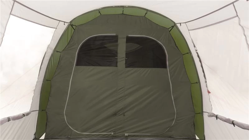The bedroom compartment is made from Easy Camp’s sleep tight material to reduce early morning light and hopefully not wake you up when the sun rises. The Inner also has storage pockets built into the tent allow you to locate torches and phones in the middle of the night. Windows are located on either side of the tent to give a view outside and curtains can toggle up into place to provide privacy when needed. Covered ventilation panels are located behind the bedroom section at each end of the tent to increase airflow and help reduce condensation. A toggled inner divider splits up the bedroom section and can be easily removed to make one big sleeping space.