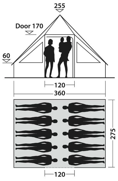 - Roomy cabin tent sleeping up to ten campers