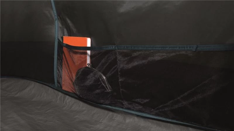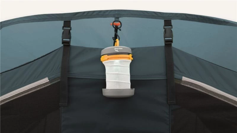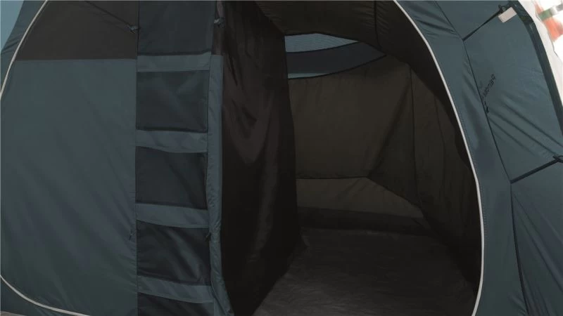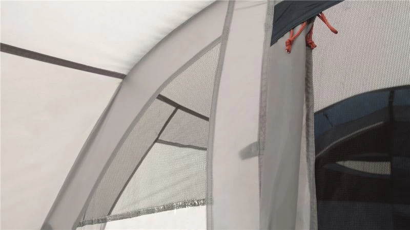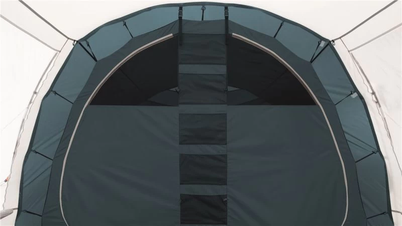 A solid 3,000mm HH waterproof rating is a great spec for the price point and as it has a sewn-in groundsheet the tent inside is sealed away from the wind and rain. Colour co-ordinated poles make it easy to pitch, as seen from our Attwoolls Pitching videos. The bedroom compartment is made from Easy camp’s sleep tight material to reduce early morning light and hopefully you don’t wake you when the sun rises. The inner also has storage pockets built into the tent to allow you to locate torches and phones in the middle of the night. Windows are located on either side of the tent to give a view outside and curtains can toggle up into place to provide privacy when needed. Covered ventilation panels are located behind the bedroom section at each end of the tent to increase airflow and help reduce condensation. A toggled inner divider splits up the bedroom section and can be easily removed to make one big sleeping space.