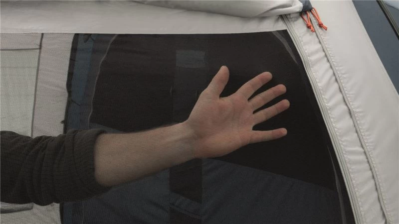 A drop-down front door into the living area gives trip free access into the tent and makes it easier for pushchairs to enter. This same entrance has a mesh door built into it so you can increase the airflow inside the tent without having any insects join the party. The pre-angled poles help to increase the internal headroom and make the awning feel more spacious in relation to the floorplan.