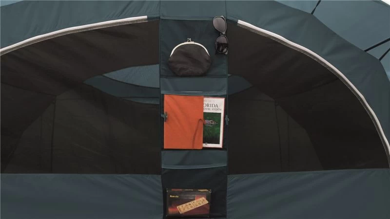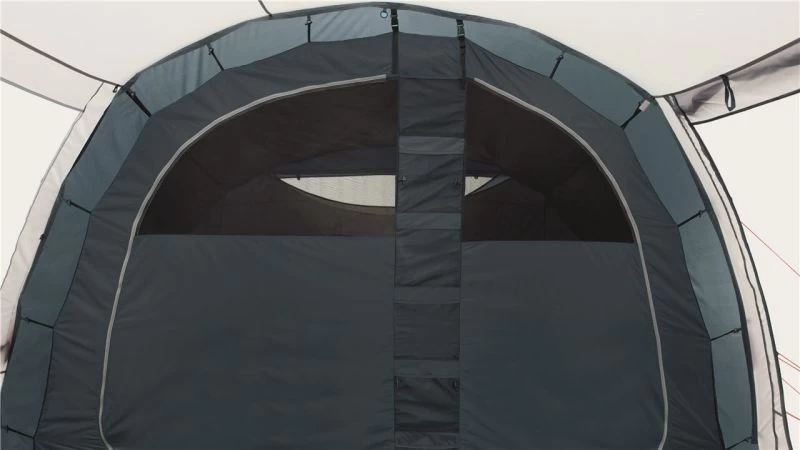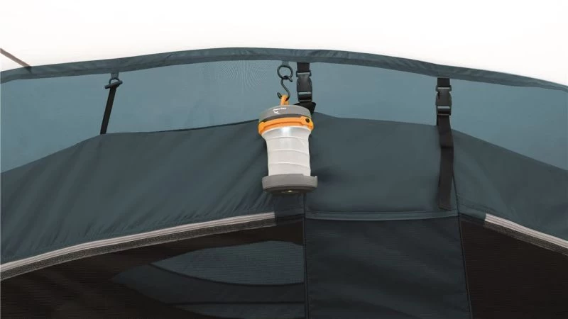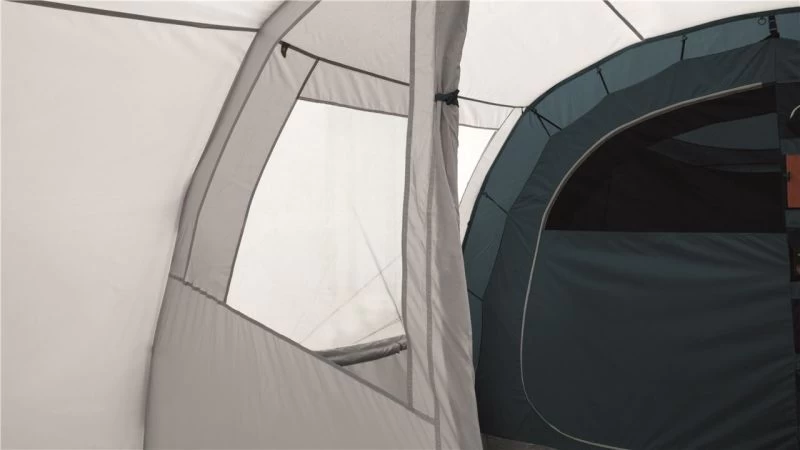 A solid 3,000mm HH waterproof rating is a great spec for the price point and as it has a sewn-in groundsheet the tent inside is sealed away from the wind and rain. Colour co-ordinated poles make it easy to pitch, as seen from our Attwoolls Pitching videos. The bedroom compartment is made from Easy camp’s sleep tight material to reduce early morning light and hopefully you don’t wake you when the sun rises. The inner also has storage pockets built into the tent to allow you to locate torches and phones in the middle of the night. Windows are located on either side of the tent to give a view outside and curtains can toggle up into place to provide privacy when needed. Covered ventilation panels are located behind the bedroom section at each end of the tent to increase airflow and help reduce condensation. A toggled inner divider splits up the bedroom section and can be easily removed to make one big sleeping space.