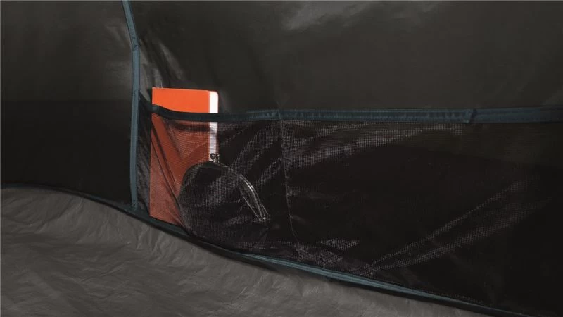 A solid 3,000mm HH waterproof rating is a great spec for the price point and as it has a sewn-in groundsheet the tent inside is sealed away from the wind and rain. Colour co-ordinated poles make it easy to pitch, as seen from our Attwoolls Pitching videos. The bedroom compartment is made from Easy camp’s sleep tight material to reduce early morning light and hopefully you don’t wake you when the sun rises. The inner also has storage pockets built into the tent to allow you to locate torches and phones in the middle of the night. Windows are located on either side of the tent to give a view outside and curtains can toggle up into place to provide privacy when needed. Covered ventilation panels are located behind the bedroom section at each end of the tent to increase airflow and help reduce condensation. A toggled inner divider splits up the bedroom section and can be easily removed to make one big sleeping space.