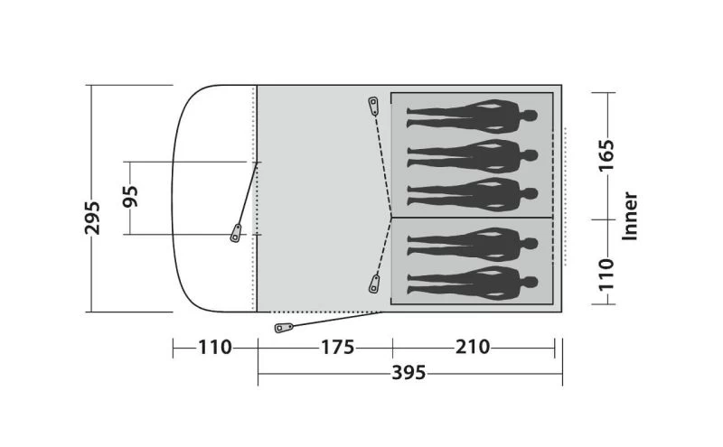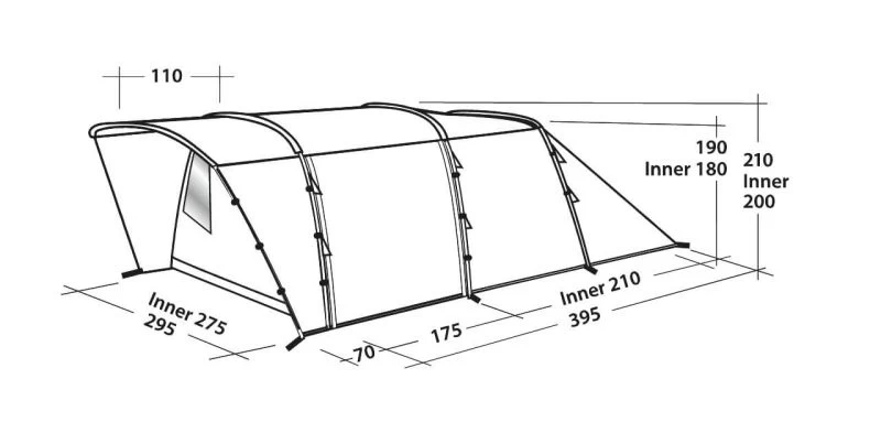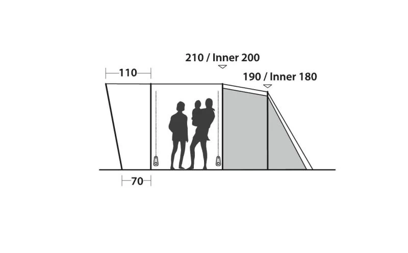 A drop-down front door into the living area gives trip free access into the tent and makes it easier for pushchairs to enter. This same entrance has a mesh door built into it so you can increase the airflow inside the tent without having any insects join the party. The pre-angled poles help to increase the internal headroom and make the awning feel more spacious in relation to the floorplan.