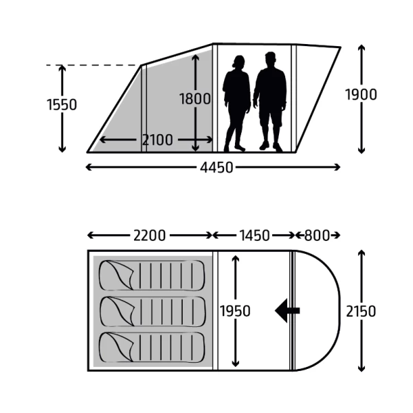 - Covered entrance – gives a sheltered entrance to your tent, which prevents rain from dripping into the living area