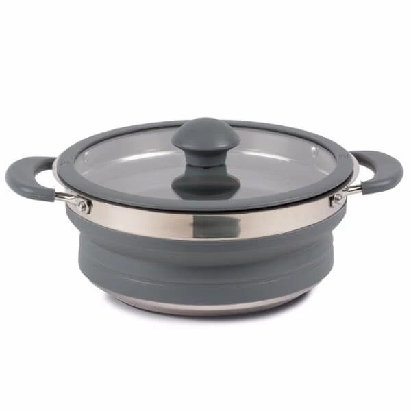 The Kampa collapsible saucepan is available in a choice of three sizes. All the pans collapse and fold down making them ideal to pack for use on your camping trip.