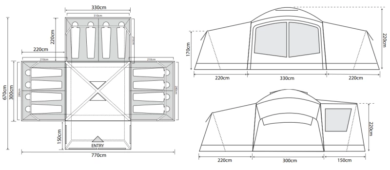 - An Optional extra front canopy can be added to the tent