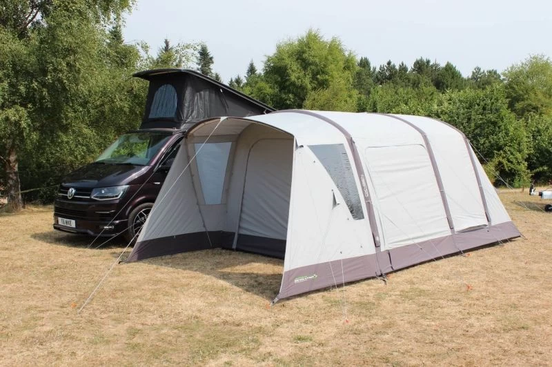 The awning features Outdoor Revolution’s Oxygen Air Frame tubes which give good stability in the wind as well as being quick and easy to pitch (as seen from our Attwoolls Pitching & Packing Videos). It also packs away to a nice small size which is crucial when in a small van. As the awning is side facing it means that your awning is most likely going to be facing a view rather than your neighbour’s pitch and will maximise your pitch size along the van. The Cacos comes with a rain safe door to create a sheltered outside space so that you can have a bit of protection against the wind and rain. This same canopy can be enclosed by adding a Porch Door, zipping on the enclosure increases your internal space and a built-in mesh door gives an insect barrier while allowing additional ventilation.
