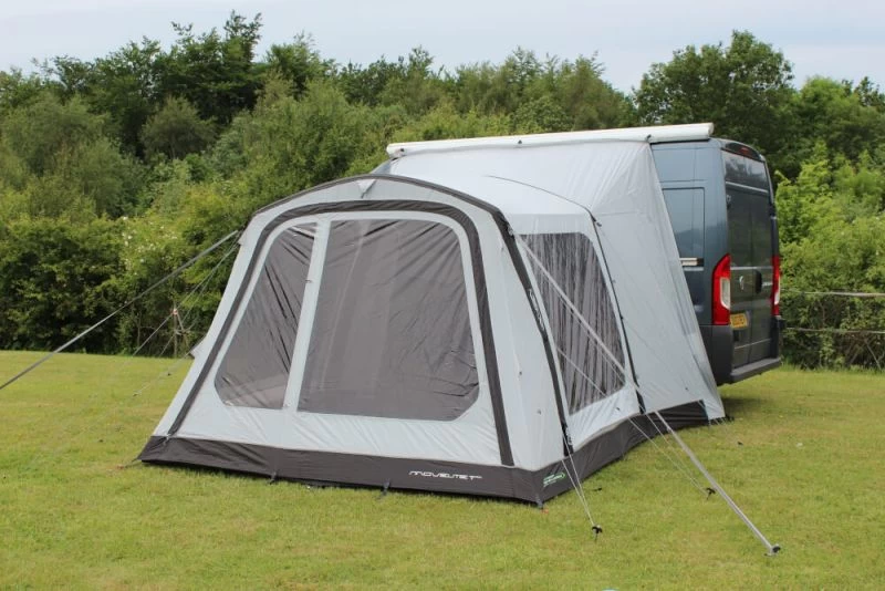The Movelite T2R has been completely redesigned for the new season, Outdoor Revolution have given the awning a boxier feel to increase the internal space while retaining the same floor dimension. Not only this, but they have also managed to achieve a smaller pack size & weight by switching to a 240HDE (150D) high density fabric, which holds a good waterproof rating (4,000mm HH). Two doors in the tunnel section allow access to the van without going through the awning, while different attachment methods give you the ability to connect to the van in multiple ways. (4mm Kador, 6mm Kador, Pole & Clamp Sleeve and Throw over guyropes)