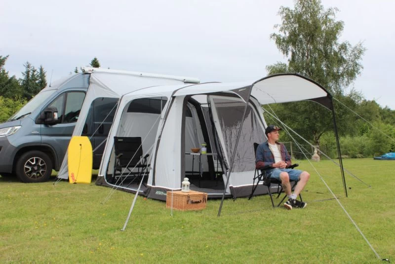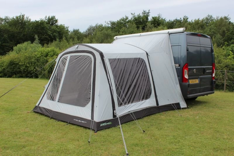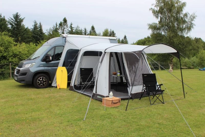 There are three different sizes for attachment with the most popular one being for VW sized vans (Low = 180-220cm), the taller size fits nicely to low-line motorhomes and panel vans (Mid = 220-255cm) and there is also a separate size for larger motorhomes (High 255 – 305cm). Crystal clear PVC windows offer plenty of light in the awning and toggle-up privacy curtains can be used to hide the contents of the awning when you drive-away.