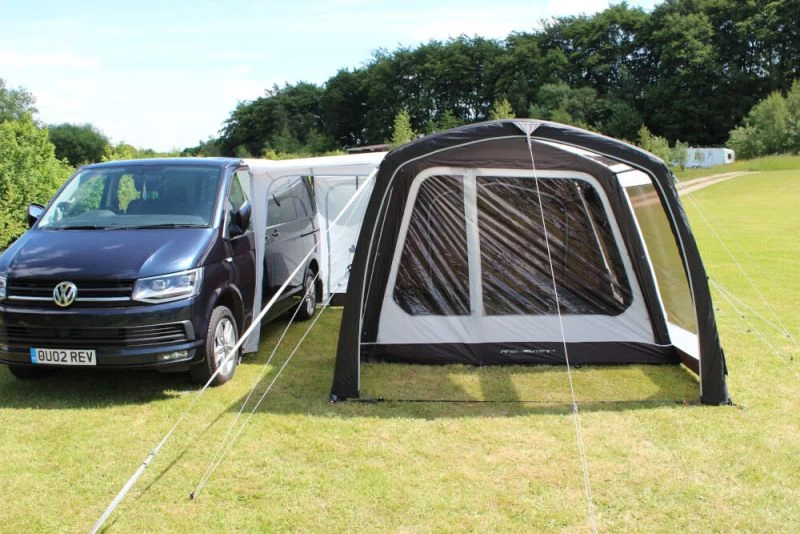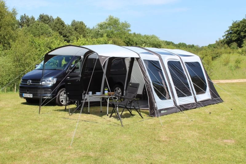 Outdoor Revolution’s Movelite T4E is based on their best-selling Polycotton awning (T4E PC). One of the standout points about the T4E is how flexible it can be, with lots of optional extras available you can really have a set up to suit you. Whether you wish to enclose the front of the canopy, add an additional sun canopy onto the front or accommodate extra guests without compromising your internal living area the Movelite has it all. The forward facing design helps to make sure that you are looking the same way as the van: this means that you tend to face a view rather than your neighbour’s pitch.