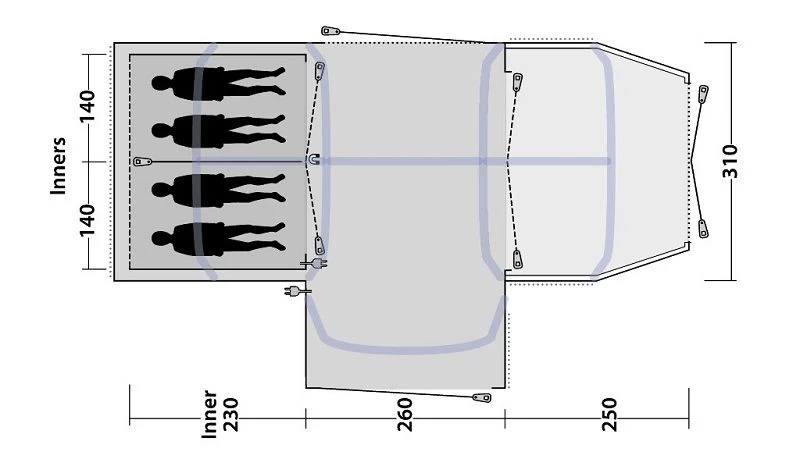 - Cable entry points to allow the electric hook to be in the tent without leaving a door open