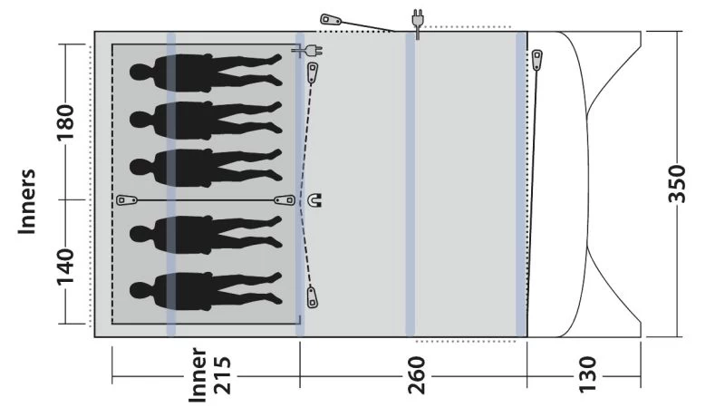- Reliable, easy-to-operate inflate/deflate valves conveniently placed outside the flysheet