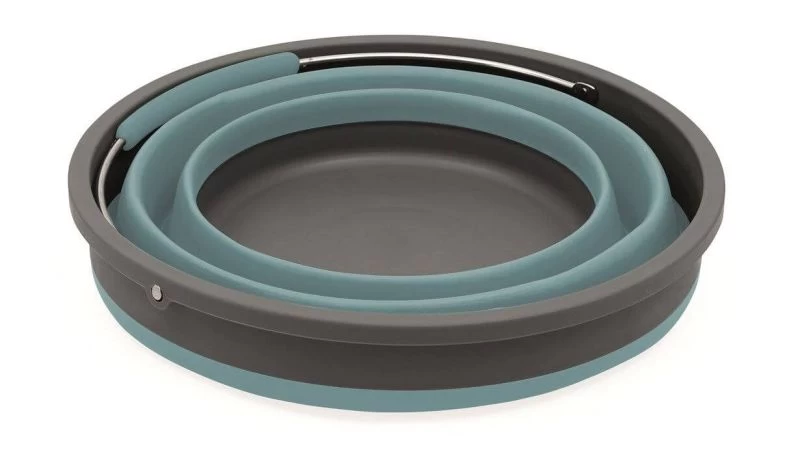The Outwell Collaps Bucket with lid collapses completely flat when not in use and is ideal for cleaning.