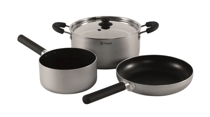 The Outwell Feast Set M is new for the 2020 season and allows you to add style to the kitchen! Made in quality aluminium with a durable non-stick cooking surface and a ferrous insert for use with an induction hob. This cook set includes 1 large pot, 1 saucepan, a frying pan with 1 lid and 2 detachable handles.