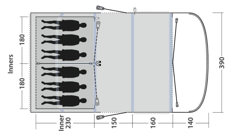 This tent actually has certain features that you don’t see in other brand’s tents, such as Outwell’s new HookTrack System which allows you to create a hanging point anywhere along the beam and because the Hook simply clips on, it has never been easier to hang a light or a storage unit. There is also Outwell’s iconic ‘Quick & Quiet’ bedroom access which give you easy access to the bedroom compartment without making a noise; this feature is also now on the living room door.