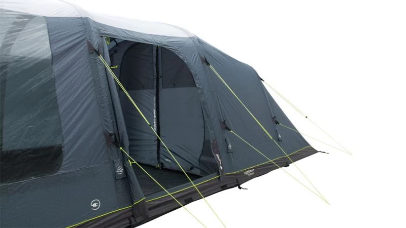 The tent features a rigid air frame system which allows the entire tent to be pitched within 10 minutes as seen from our Attwoolls Pitching & Packing Video. Each beam is inflated individually and as standard the tent comes with a decent manual pump. Large windows allow plenty of light into the tent, and toggle up curtains provide privacy when needed. Toggled dividers in the bedroom sections give a visible partition, so everyone is able to have their own space. Whereas storage pockets and cable entry points help to not only make the tent practical but also to utilise your space efficiently.