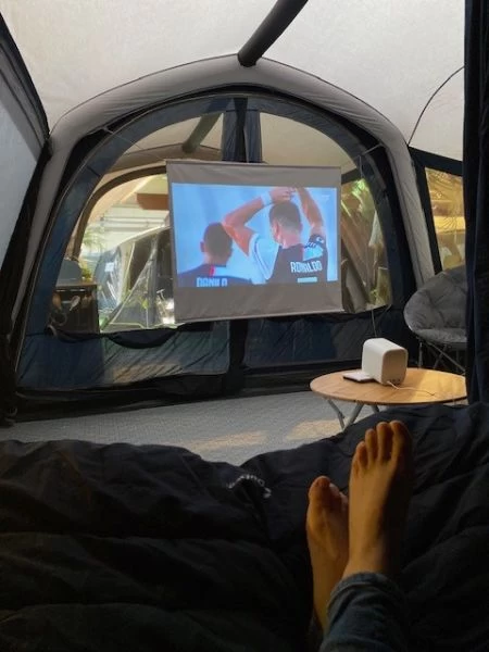 Home from home luxury has just got even better with the new Outwell projector screen. With so many cheap projectors now available it’s time to connect your tech and stream live games or enjoy big-screen movie nights from the comfort of your tent – the perfect way to turn a Wing Lounge into a home cinema. Use inside or out − the Technical Cotton screen is HookTrack compatible and connects using 2 poles and a low-visibility guy line.