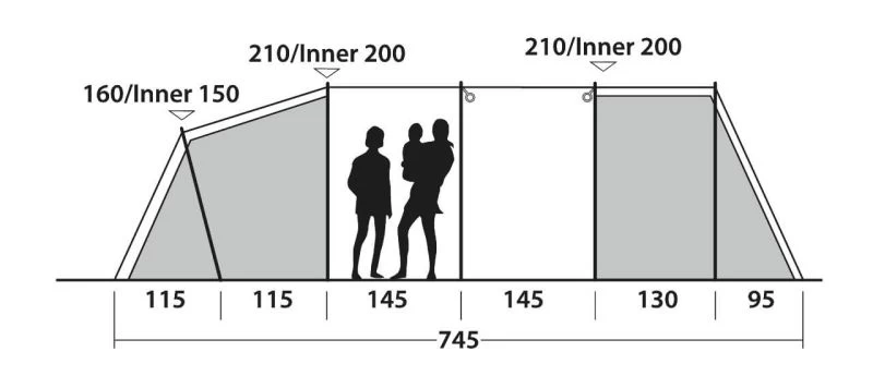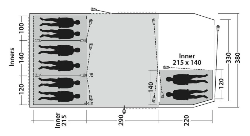 The Winwood 8 Tent is Outwell’s largest tent in their ‘Select Collection’ and features an extra bedroom compartment in the front awning to accommodate extra guests. Overall, the tent has three zones; Sleeping, Living & Awning which allow you to create a home away from home. An enclosed front awning creates a perfect wet/dry area for cooking or storing shoes. An ample living area can be opened up into the awning section to increase your space under cover and a dark bedroom section should hopefully mean you get a longer night’s sleep.