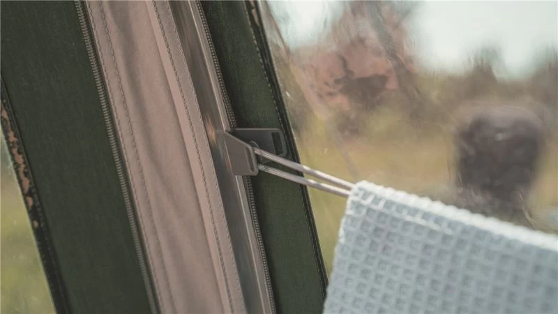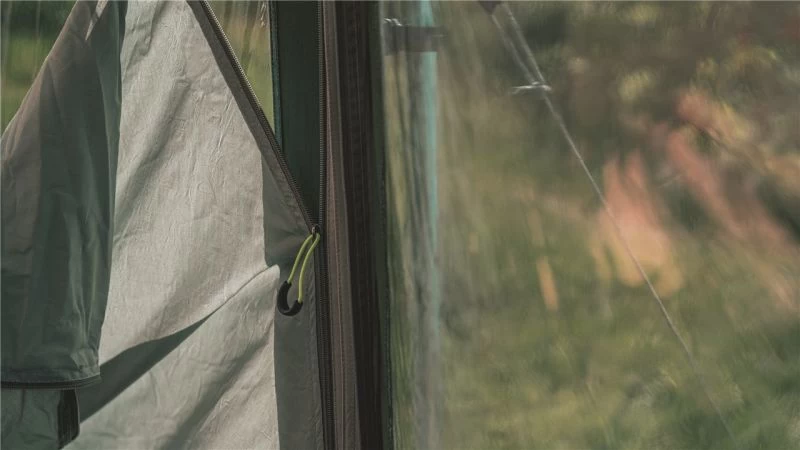 Throughout the tent there three main zones for cooking, living and sleeping. Each zone flows easily into the next and can be positioned to your desired setup. Large tinted PVC windows give plenty of light into the tent and visibility out; below the window are zip up curtains to get privacy when needed and can be adjusted to give as much or as little light as you want. If the tent isn’t big enough an additional front awning can be added onto the tent to make it bigger while retaining a more manageable pack size & weight.