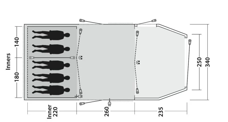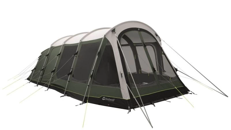 Not only does the tent come with high-vis guylines, but also ‘Storm Ties’ Velcro around the 19mm steel poles to make sure the fabric and poles are tensioned together, while storm straps are provided front and back to increase stability. Outwell have really gone to town on including things like their own HookTrack System to give you the option to have a hanging point for lights or storage pockets throughout the tent. ‘Quick & Quiet’ Access doors are located on the bedroom compartment and the living room door. Premier Bedrooms which are nice and dark and have a Rear Ventilation System built in to increase the airflow and help reduce condensation (this can be covered to keep the bedroom nice and dark if needed).