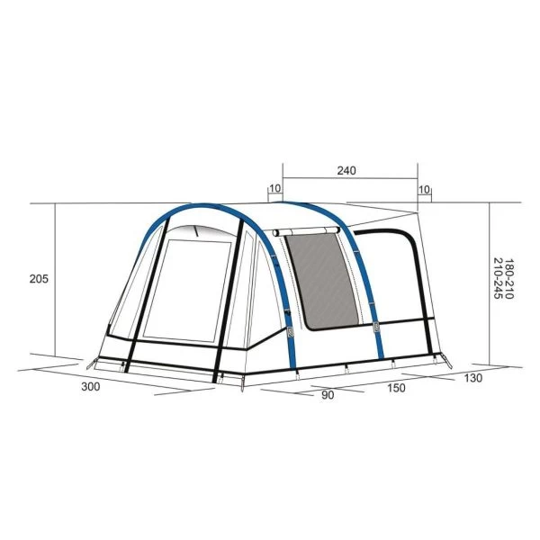 The Westfield Hydra is an awning for the family on the go while offering great internal space but still keeping a small and light pack size. The Hydra can easily be pitched by one person within ten minutes, this is thanks to a Multi-Point Inflation System, as well as having a quick erection time the awnings benefits from Westfield own HydroDore SL Fabric which makes it the perfect option for a weekend or week.
