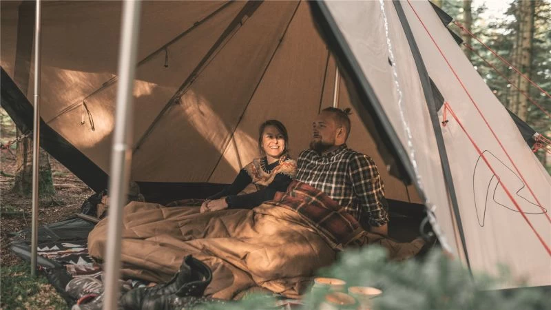 The Chinook Ursa S tipi sleeps up to six and features zip-close gussets each side of the door that, when undone, allow the whole front to be opened using poles converted from the door’s A-frame. This fully reveals inside and creates a shaded living space from which to socialise and enjoy views out on sunny days − this Bedouin-style is especially appreciated in hot climes. The neat Internal Apex Vent Control is simple to adjust from inside.