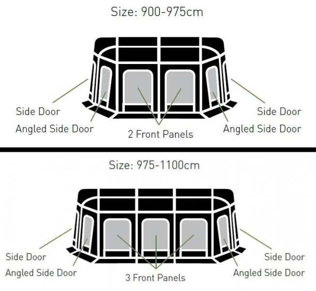 - Removable panels dependant on size of awning (900 – 975cm = 4 panels / 975 – 1100cm = 5 panels) all with veranda option