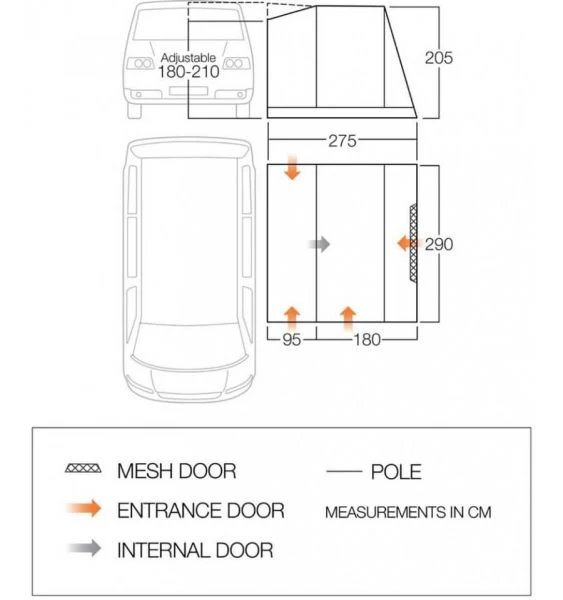 The small pack size enables it to be carried in any vehicle as it can be stored underneath seats. The Vango Faros comes in a Low attachment height which makes it perfect for T5’s or similarly sized vehicles. Crystal clear windows offer plenty of light and toggle-up curtains help to give privacy when it is needed. The open front canopy offers protection against the elements which is ideal in uncertain weather conditions.