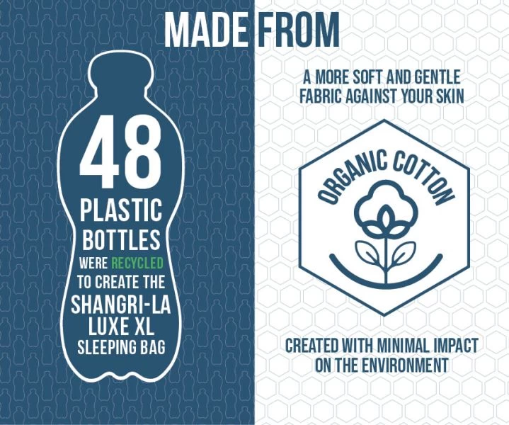 - Organic Polycotton Shell- Created using a mixture of recycled polyester and organic cotton to create a high quality, sustainable polycotton fabric. This shell fabric offers increased comfort, softness and a luxury home from home sleeping experience.