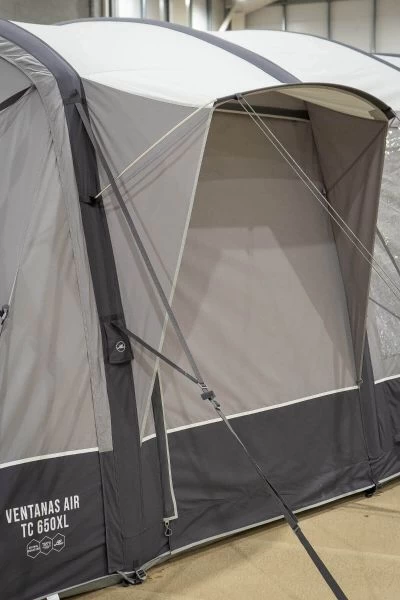 Vango’s Ventanas TC 650XL has a multi-functional front door that allows it to be put in different positions to give as much shelter as you want away from the weather. A groundsheet is supplied with the tent so that you can completely enclose the front area but still utilize the rain safe door on the side if the elements turn against you. The divisional door between the living area and awning area can be zipped back completely so that suddenly you have one big open living space. The lip between the sections also folds down to create a trip-less walkthrough ideal for pushchairs or wheelchairs.