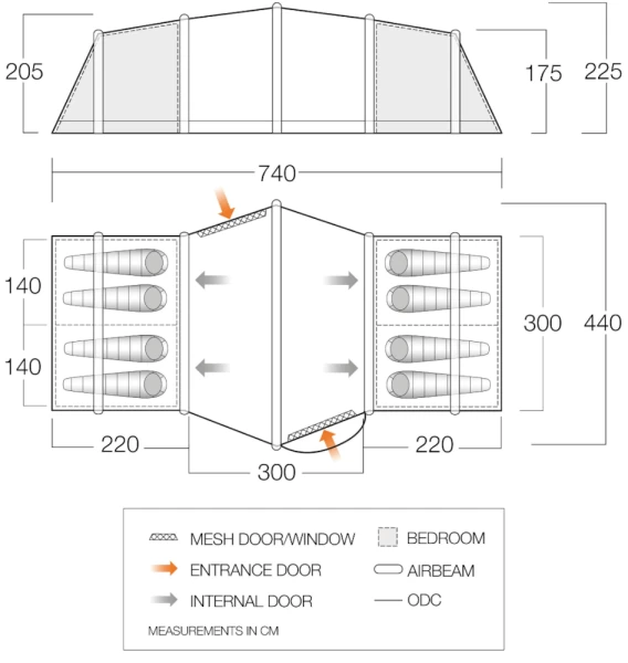 - Vango AirZone – High and low level ventilation panels combine to create a comfortable flow of air through the tent. Air circulation is essential for reducing condensation