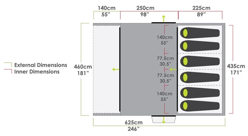 | Capacity (Maximum) | 8 Persons (With optional additional inner) |