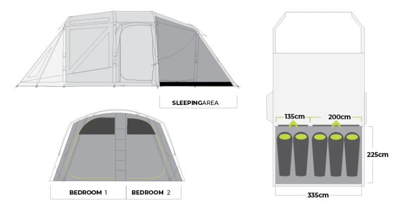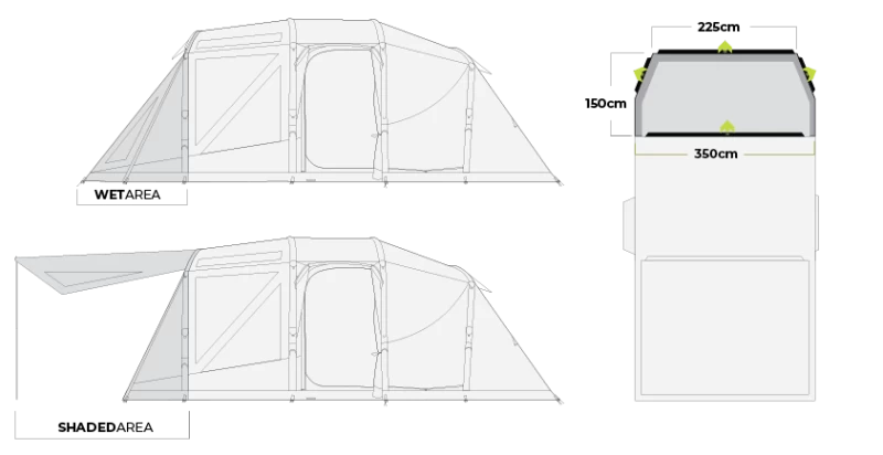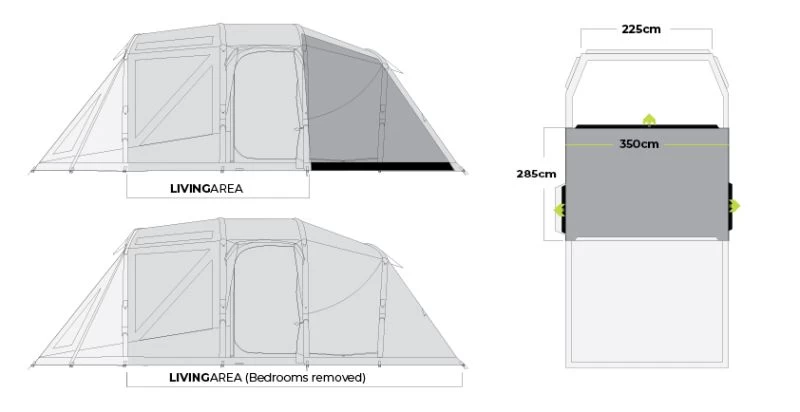 - Configuration Features – Internal Living Area, Removable Inner, Bedroom Dividing Curtain