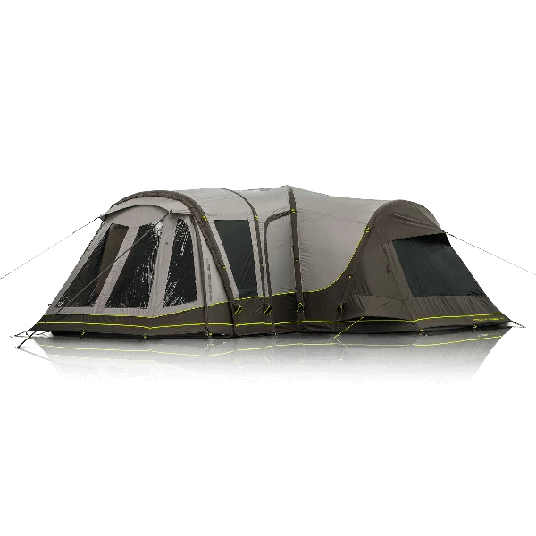 The Aerodome III Pro is one of Zempire’s most iconic tents, It is spacious, durable and has more features built into the tent as standard than any of its rivals. The sleeping pod design gives the ultimate privacy for sleeping, everyone can have their own room which will hopefully mean that everyone can get a better nights rest. There are three main sections in the tent (awning, living & sleeping) that offer plenty of free space to make the tent your home away from home. Due to the tent using a UN Spec 210D Ripstop fabric the tent is very robust and can handle whatever the weather throws at it, there is also an incredible amount of mesh panels throughout the tent which really helps to keep the internal temperature of the tent is a lot more comfortable on warm days. The divisional 360 door between the living and front awning area can be opened up to maximise your internal space. Zempire’s deeper bedrooms give you the opportunity to accommodate most sized airbed so that you can get a good nights sleep.