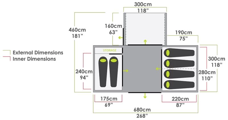 The Zempire Aerodome Pro II is in a class of its own – there isn’t really anything else like it on the market, certainly not for the family who wants high specification and separate bedrooms. The two-sleeping pod design gives the ultimate privacy for sleeping. The kids can have their own room which will hopefully mean that everyone can get a better night’s rest! A larger than normal master bedroom includes its own entrance which means that there are less zips to undo when going to sleep late at night. The new colour helps to make the living space a brighter place to be and with the open front, you can feel like you are bringing the outside in. If you are still looking for that enclosed space, then you can add on the new Pro Awning Wall Set which simply zips on to the tent and includes not only a waterproof door with tinted windows but also a complete mesh wall as well. This wall set can still be gull-winged out like a canopy to provide additional protection against the elements.