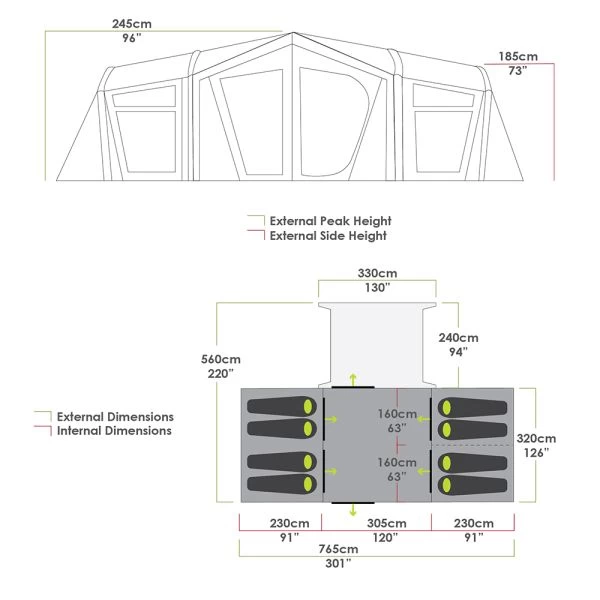 The Zempire Delta Force is by far and away in a league of its own. It sits in Zempire’s iconic ‘Air Canvas’ Collection alongside its siblings the Fortress & Airforce which are made to the same high specification and level of features. The Delta Force combines the comfort and reliability of traditional canvas with the more modern design of an Air Frame, meaning that you can have both the luxury of easy of pitching with a premium fabric. The Vis-à-vis style enables the user to have separate sleeping areas away from one another, so hopefully everyone gets a good night sleep. The bedrooms are very generous and have been sized so that whatever you choose to sleep on the Delta Force will be able to accommodate it. We would say that the tent is a true 8 person but it could take a maximum of 14 if you really wanted.