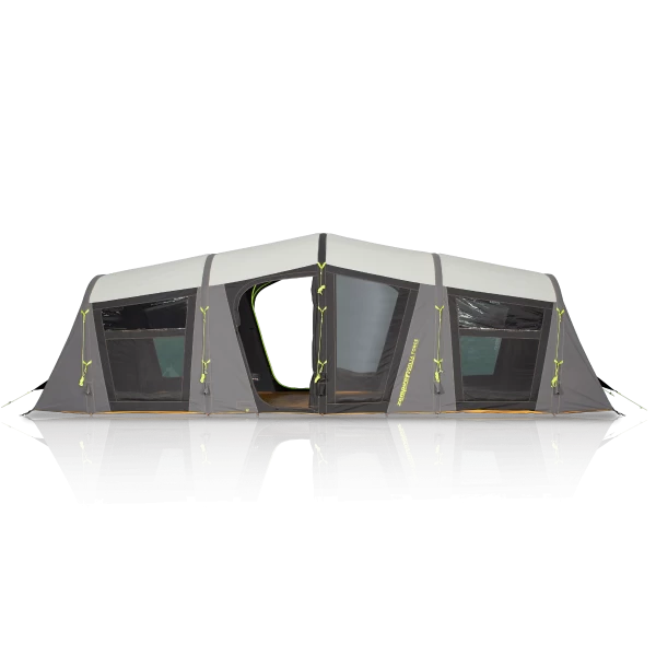 As with all of Zempire’s tents, ventilation is key. Not only do you get to sleep under a breathable fabric, but every panel also has a built-in ventilation point (be it via a zip down window cover or bedroom vents). The latest V2 (version 2) model is now completely inflatable and we would recommend purchasing an electric pump so you can truly sit back, relax, and watch your tent go up! The optional electric pump would also help to make sure you inflate the tent to the correct pressure. A single inflation point takes the hassle out of moving the pump while several deflation points aid you to get it back in the bag every time.