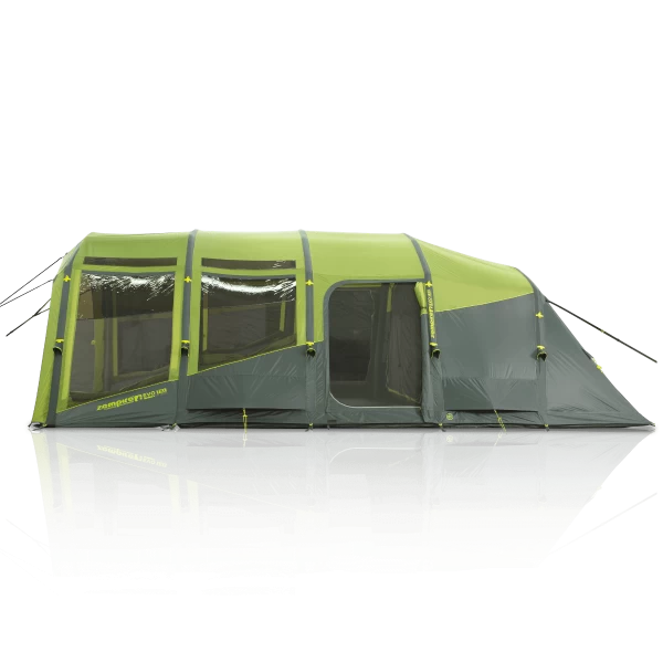 Zempire’s Sero-Link AirFrame System gives all of the structural strength of an Inflatable tent but without the bulk and weight. This is achieved by inventing a revolutionary new way of keeping the inflatable tubes in the tent. The open canopy on all of the Evo’s can be enclosed by purchasing the additional Front Awning Wall Kit. The kit is a window panel that has two side doors built into it, a full-frontal mesh door and some king poles. Both the front door and the mesh door can be attached at the same time giving the option to have the tent how you like it. The mesh door can be zipped on and left in place while the main door (which is in front of the mesh) can then be made into a Canopy (Gullwing Door) with the king poles included in the pack.