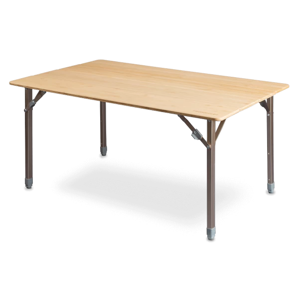 Zempires Kitpac large table features a natural bamboo smooth surface table top which looks fantastic. It is easily folded into 4, and neatly fits in a durable carry bag. The table legs can be individually adjusted using the push button leg adjustments giving you the extra comfort and perfect height you require.